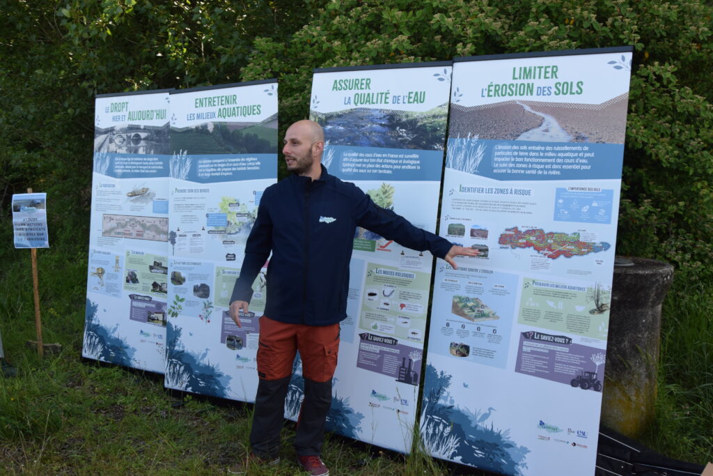En 2025, Epidropt s’est également équipé de 11 kakémonos et d’une table jeu ! Conçus pour être facilement mobiles, ces supports permettent d’aborder les principales thématiques pour lesquelles œuvre le syndicat de manière plus ludique et pédagogique dans n’importe quel lieu. Que ce soit lors de réunions, d’animations ou de divers évènements, ces supports ont pour objectif de partager les connaissances autour de la vallée du Dropt et des milieux aquatiques.