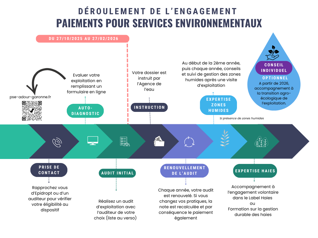 Suite à la candidature d’Epidropt auprès de l’Agence de l’Eau Adour Garonne, le bassin versant du Dropt est lauréat (parmi les 33 territoires retenus du bassin versant Adour Garonne) pour la mise en place de PSE (Paiements pour Services Environnementaux) dits « Zones humides – prairies permanentes (ZH-PP) » dès 2025.